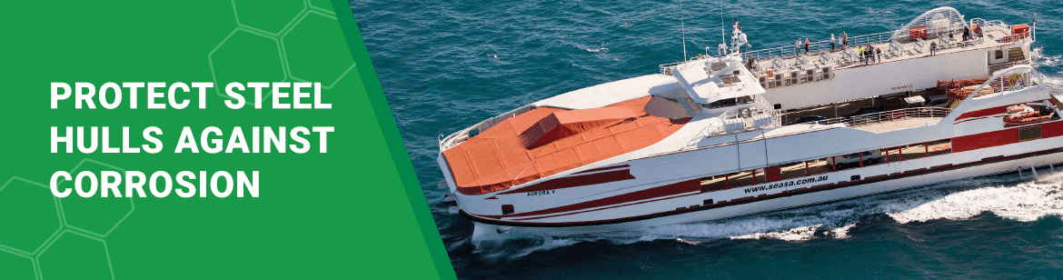 The system normally incorporates one basic type of anode which uses inert materials in order to provide a long system life. The anode is encapsulated in glass reinforced resin which is attached to the external surface of the hull. Since, in service, current output involves local high current densities and voltage gradients, a dieletric shield of suitable area is used in the immediate vicinity of the anode.