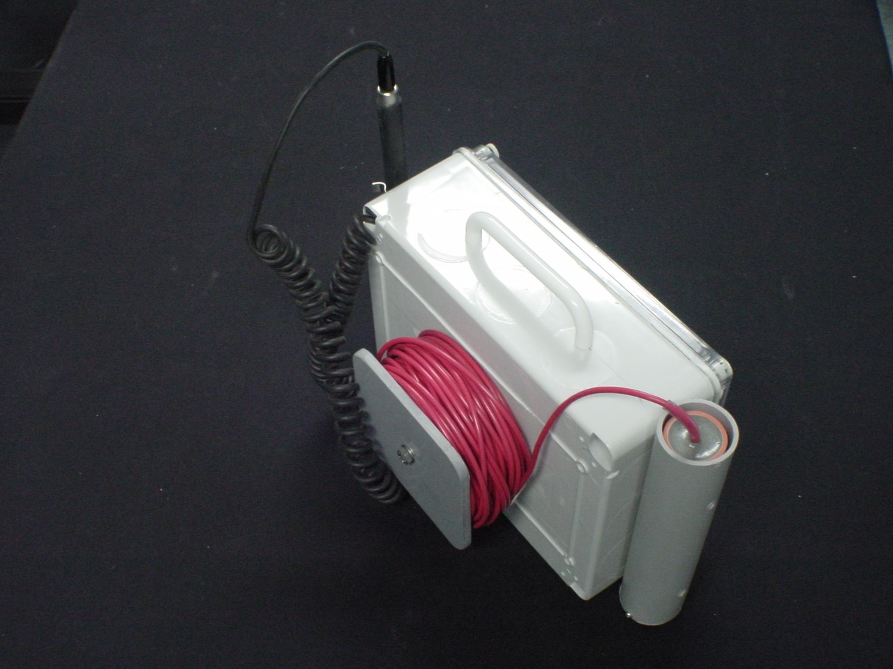 • The Silver/Silver Chloride reference electrode is attached to 25 metres of cable which conveniently winds up on a reel at the back of the unit.