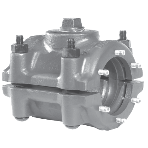 Style 80 sleeve bodies are cast from close-grained gray iron (malleable iron in inch size). Steel follower rings on each end are completely enclosed in the sleeve body. Carbon steel set screws are drawn up against the follower ring to compress the gasket creating total circumferential sealing on the pipe. Side bolts, which are fully enclosed within the sleeve body to prevent corrosion, are tighten to compress side gaskets providing a complete leak proof seal.