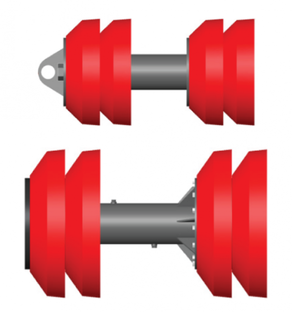 The UM series are also available in 3 or 4 cup configurations. The addition of sealing discs improve performance in batching applications, removal of paraffin, or removing debris in natural gas pipelines. Easily mounted cleaning brushes (in UMX model) or blades further enhance the cleaning function of the pig.